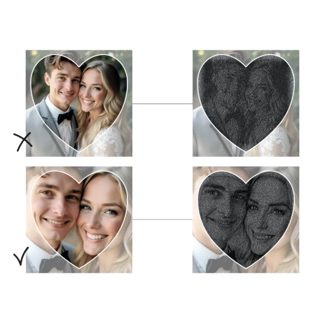 When uploading, select a paired photo, and before previewing, zoom in so that the faces barely touch the frames.